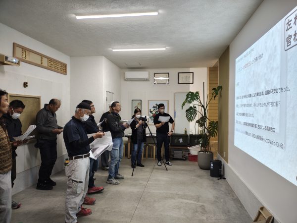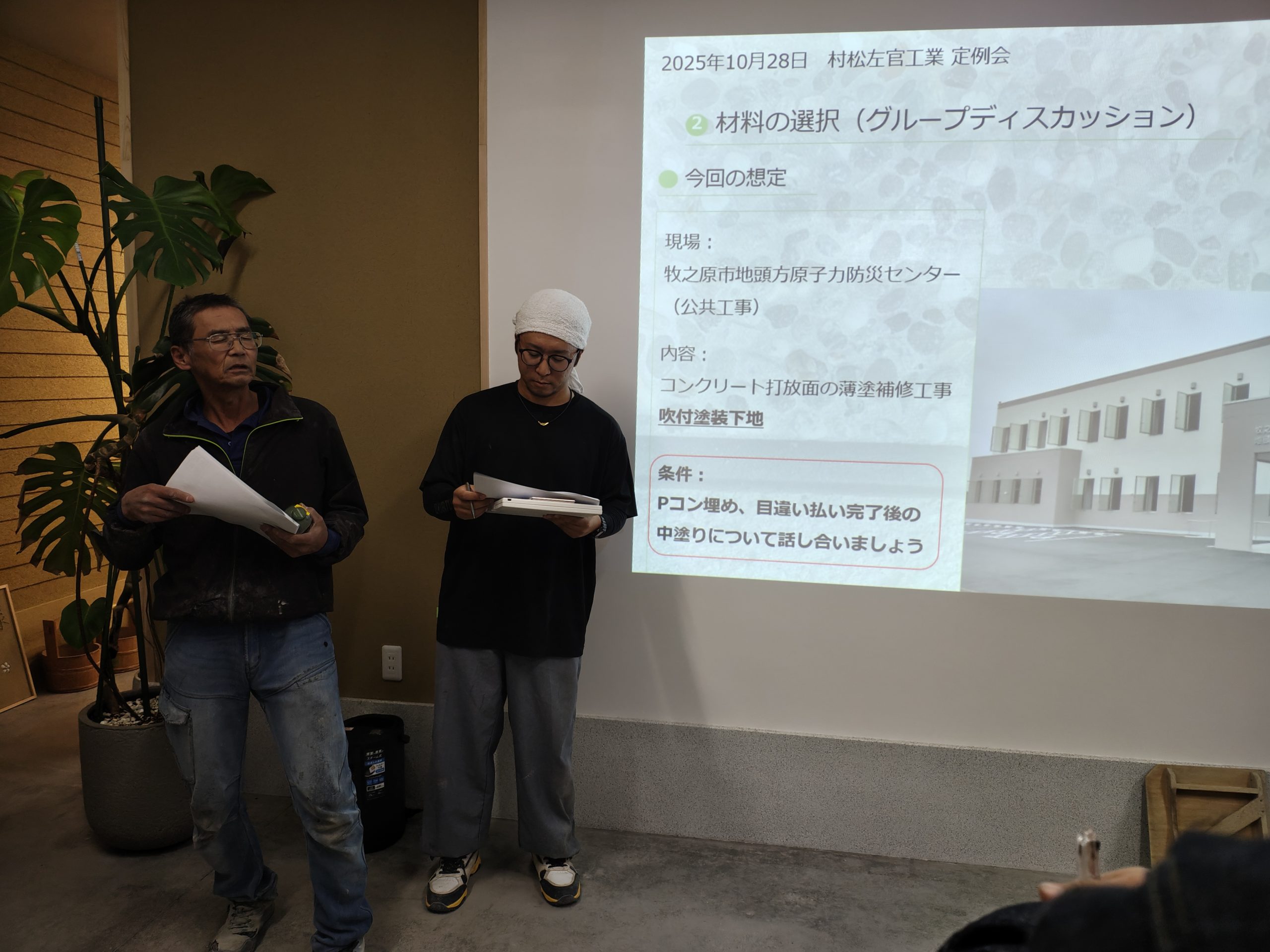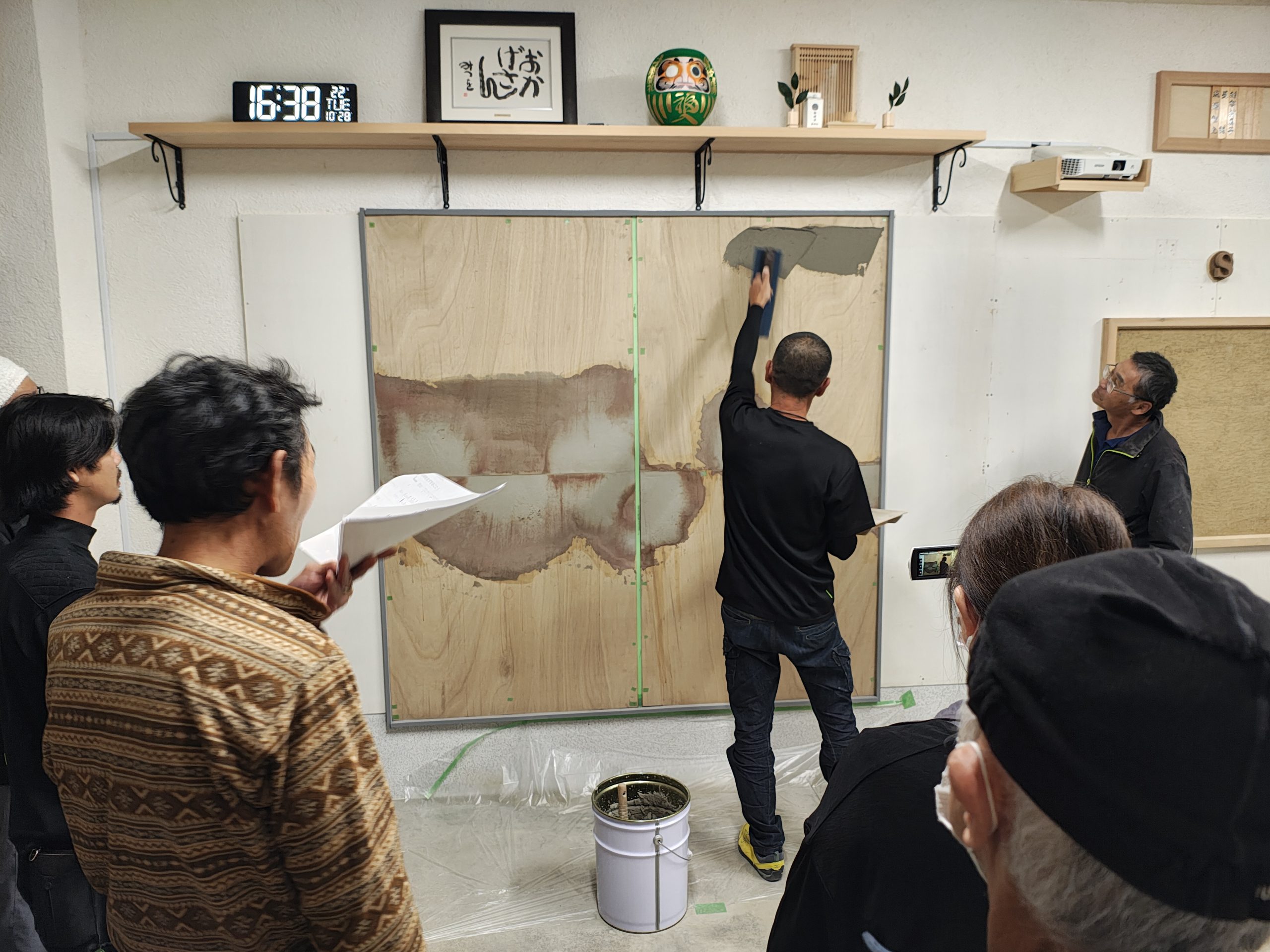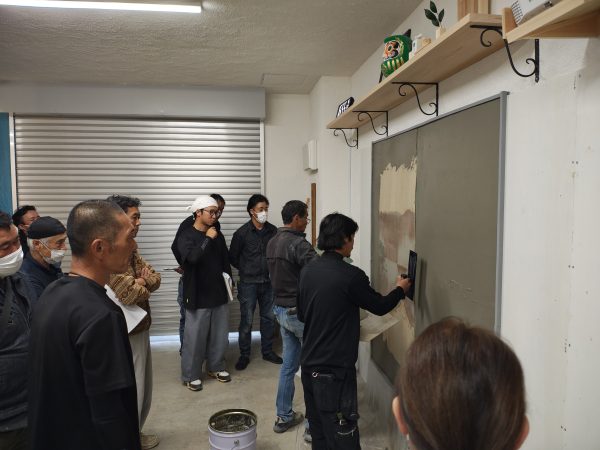 今回は全体へのレクチャーを行い、村松左官工業としてのベーシックなやり方を再確認しました。